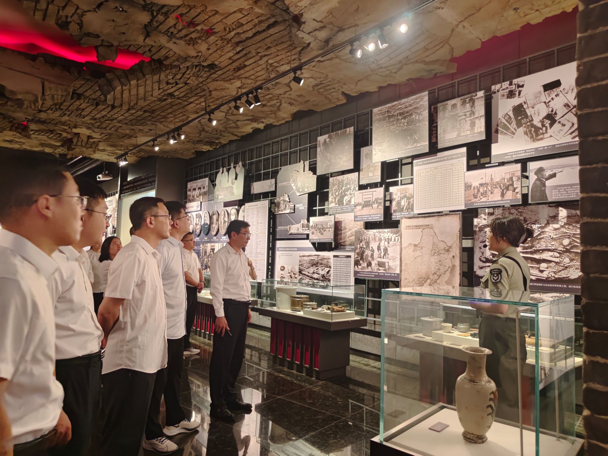 6月27日,师生首站抵达东北抗日义勇军纪念馆——这座全国唯一国家级义勇军专题纪念场馆,也是《义勇军进行曲》重要素材来源地。在讲解员的引导下,党员们通过展柜中斑驳的武器、泛黄的文书以及情景复原雕塑,系统了解了义勇军从自发御敌到融入党领导的抗日民族统一战线的历程。党员们驻足于杨靖宇将军的展区,当听到将军在弹尽粮绝、零下四十度的严寒中,孤身与日寇周旋数昼夜直至牺牲,敌人解剖其肠胃仅见草根棉絮的事迹时,许多人眼眶湿润。