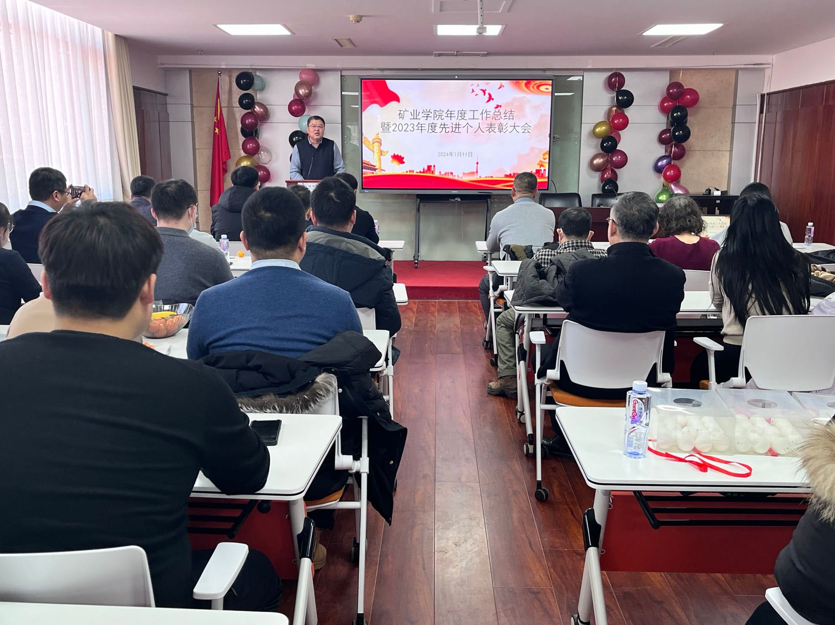院长王东对2023年度的重要工作和成绩进行了总结,并初步布置了2024年的重点工作。他指出,2023年是全面贯彻落实党的二十大精神和推进辽宁全面振兴新突破三年行动的开局之年,也是实施“十四五”规划的承前启后之年。学院按照学校总体安排,全员协同努力,取得了丰硕的业绩,并对党建工作、学生思政工作、绿色校园建设、学科专业与学位点建设、人才培养等方面进行了全面总结。2024年度的重点工作包括强化学风考风建设与专业情怀、引育学科领军人才、培育学科新增长点、冲击教育教学成果、完善学位点建设工作、加强重大重点项目培育、积极申报高层次科技奖励、加强对外交流和激发创新活力等。王东院长强调,2024年正值建校75周年,学院要勇于担当,取得更大的成绩,为学校75周年校庆献礼。