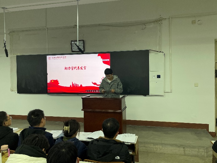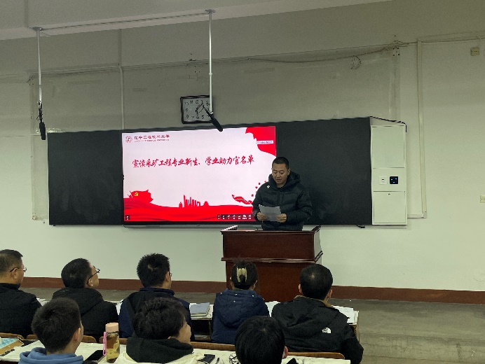 图4 采矿工程系主任姜聚宇宣读学业助力官名单