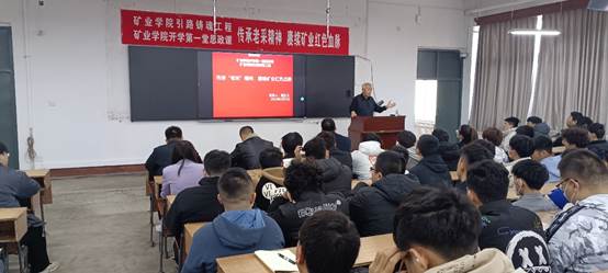 发展历史及个人经历讲起,提升同学们对学校、学院及专业的认识。随后,题教授以煤炭引出“太阳石精神”的内涵,鼓励同学们传承、发扬“太阳石精神”,为地矿行业的振兴发展奉献毕生精力,为“太阳石精神”赋予全新的活力,为实现中华民族伟大复兴贡献力量。