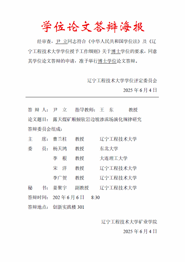 2025年博士学位论文答辩公告(答辩人:尹立)