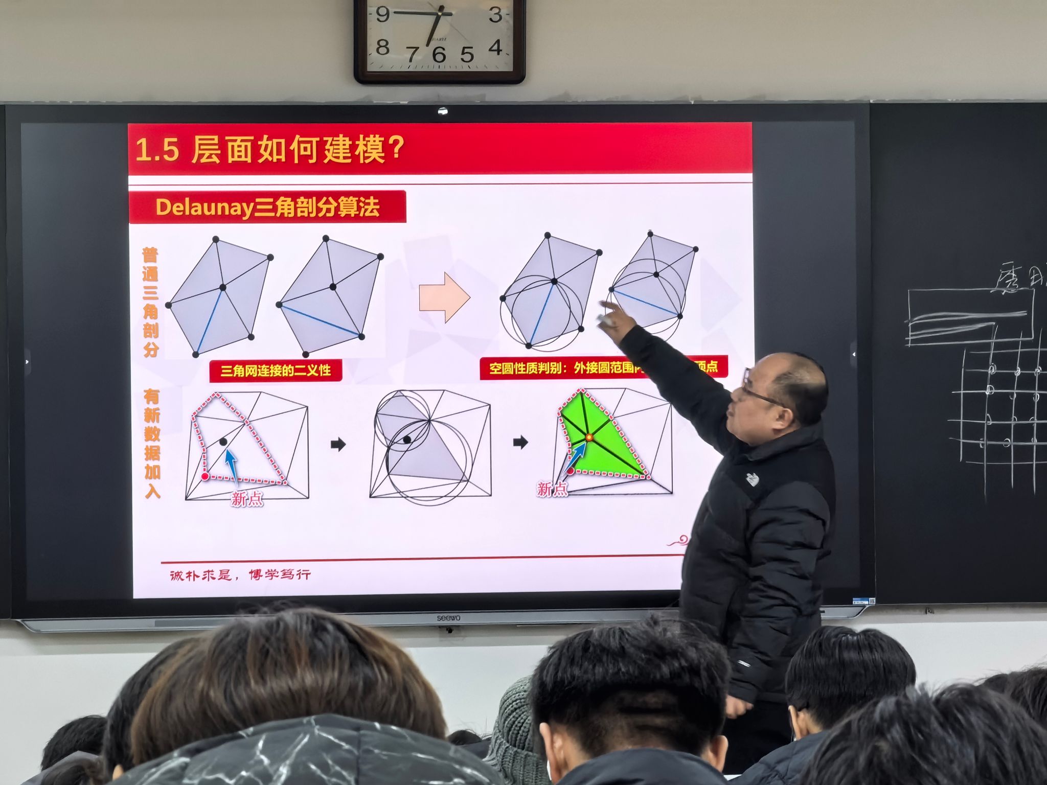 柴森霖老师借助露天煤矿实景图片,生动解析了露天开采的基本概念与作业特性,让新生对专业领域形成直观认知。随后,他通过三维地质建模动态演示,系统呈现复杂地质结构向可视化、可分析数字模型的转化过程,而这类模型正是资源评估与开采设计的关键技术支撑。